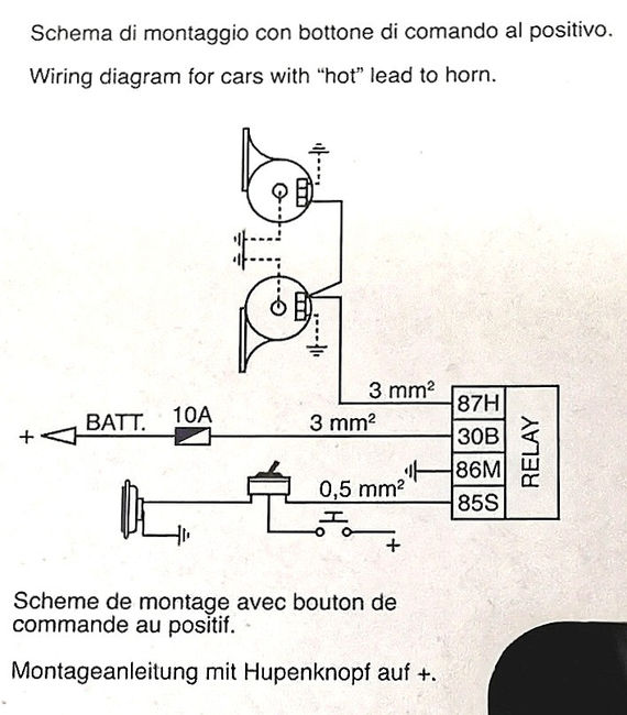 Made of corrosion-resistant materials: Hornkörper: DC04, Akustische Leitung: ABS-Kunststoff, Hupenverbinder: CuZn33 EN 1652 HV10 80-100 – Messing, Einstellschraube: C18 Stahl, Terminal-Kunststoffsockel: P.A. 6-6 Caricato 30 fv, Niete: FeCB4FF - 4.8 Stahl